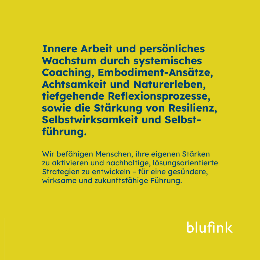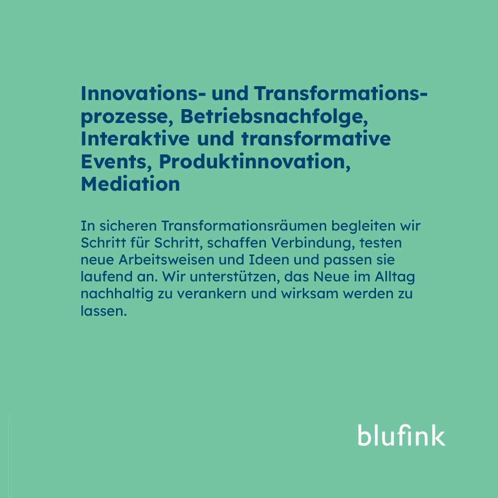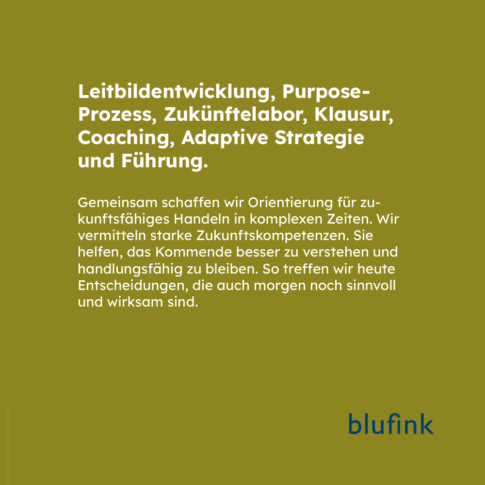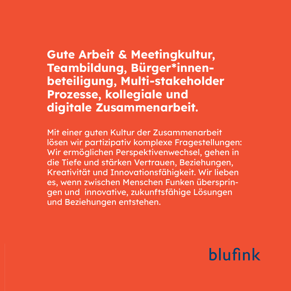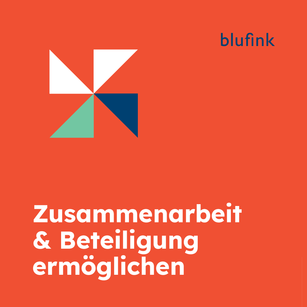 blufink befähigt gemeinsam zukunftsfähig zu handeln: erfrischend mit Verbindung, Freude, Mut & Professionalität.