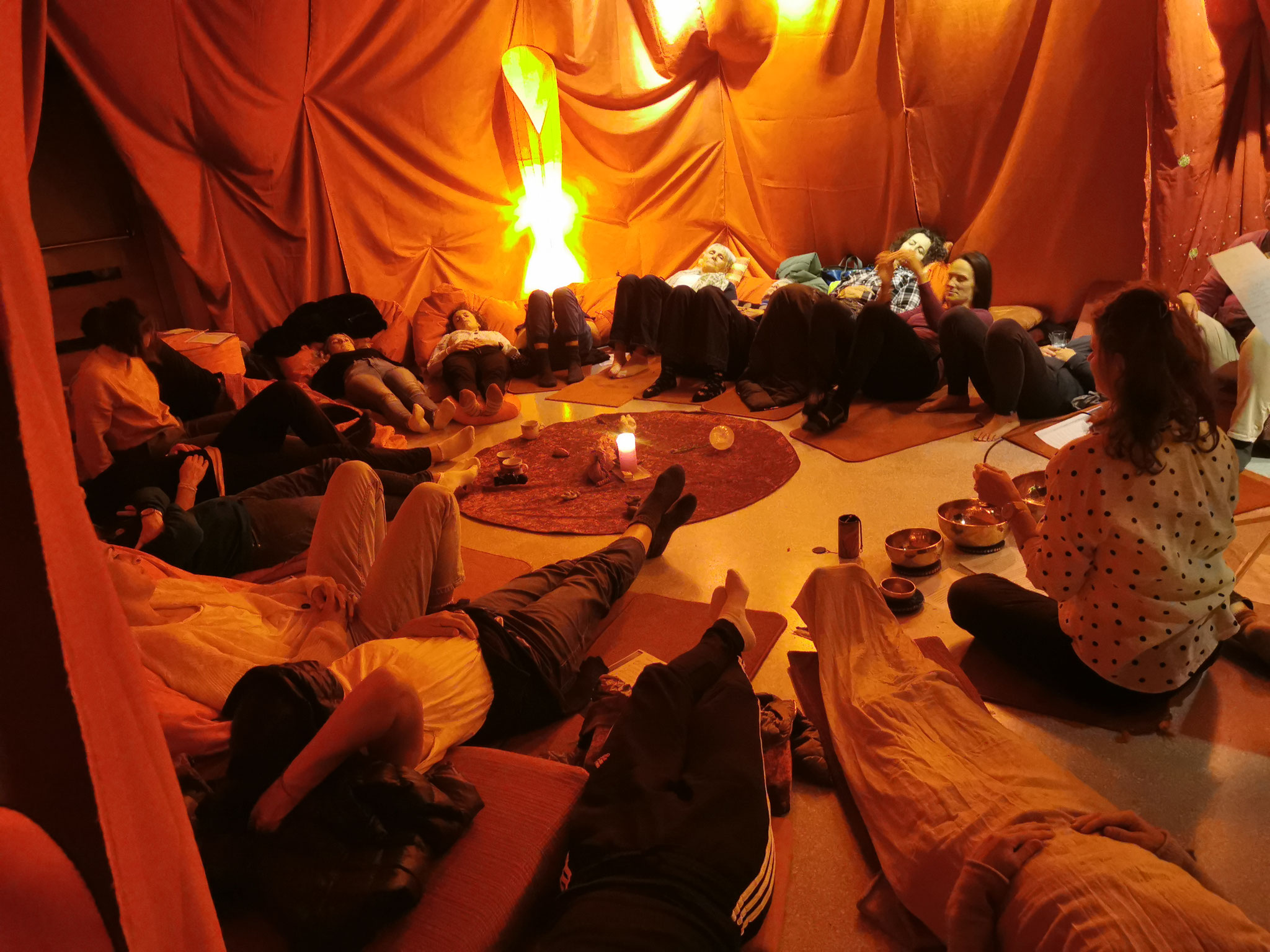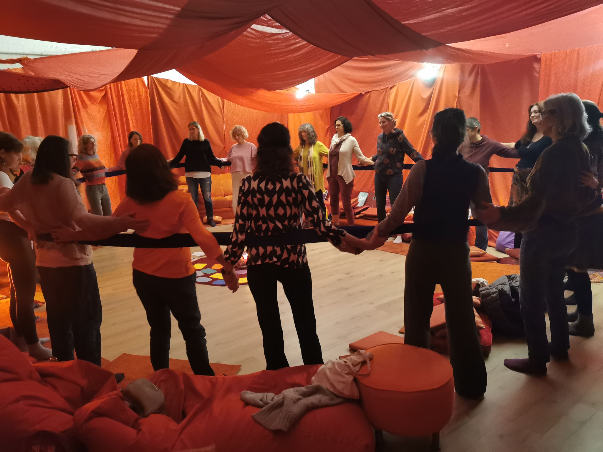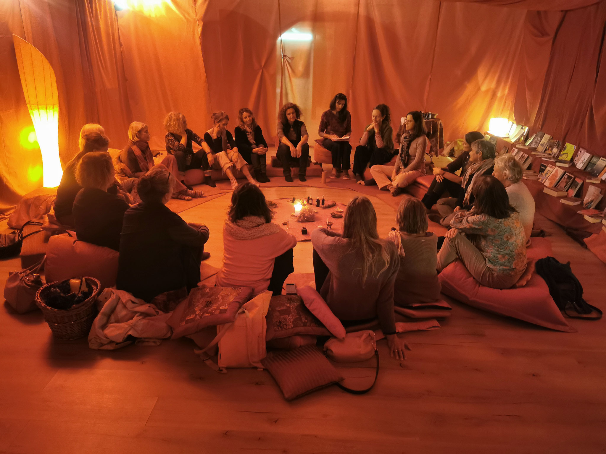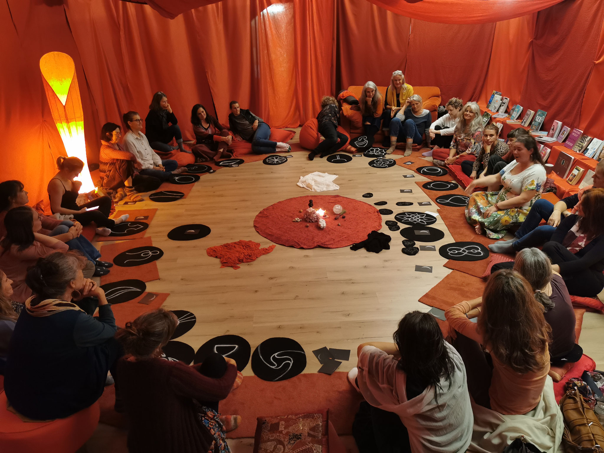 „Das Rote Zelt“, der rot dekorierte Raum, der im Herbst für eine Woche in Mals und in Meran seine Tore öffnet, in dem Frauen sich informieren, stärken und nähren; zuhören und gehört werden, gemeinsam lachen und weinen können, die Verbindung spüren und neue Sicht- und Lebensweisen kennenlernen.