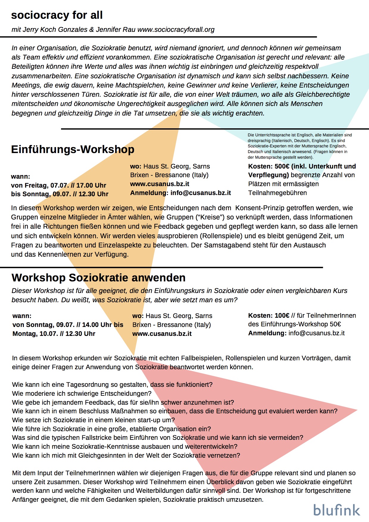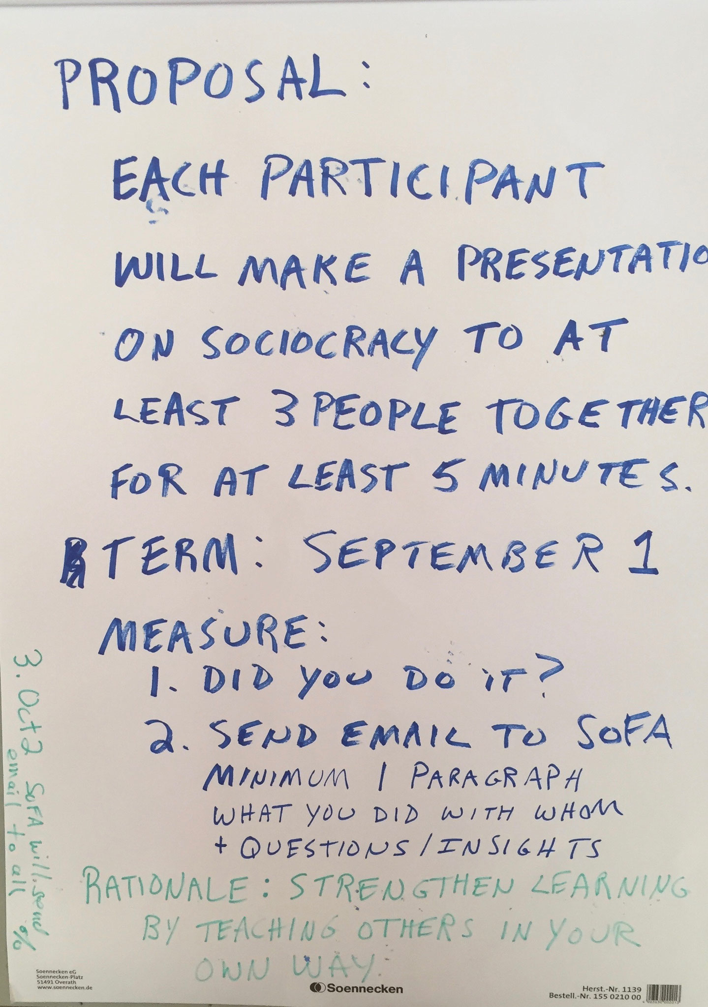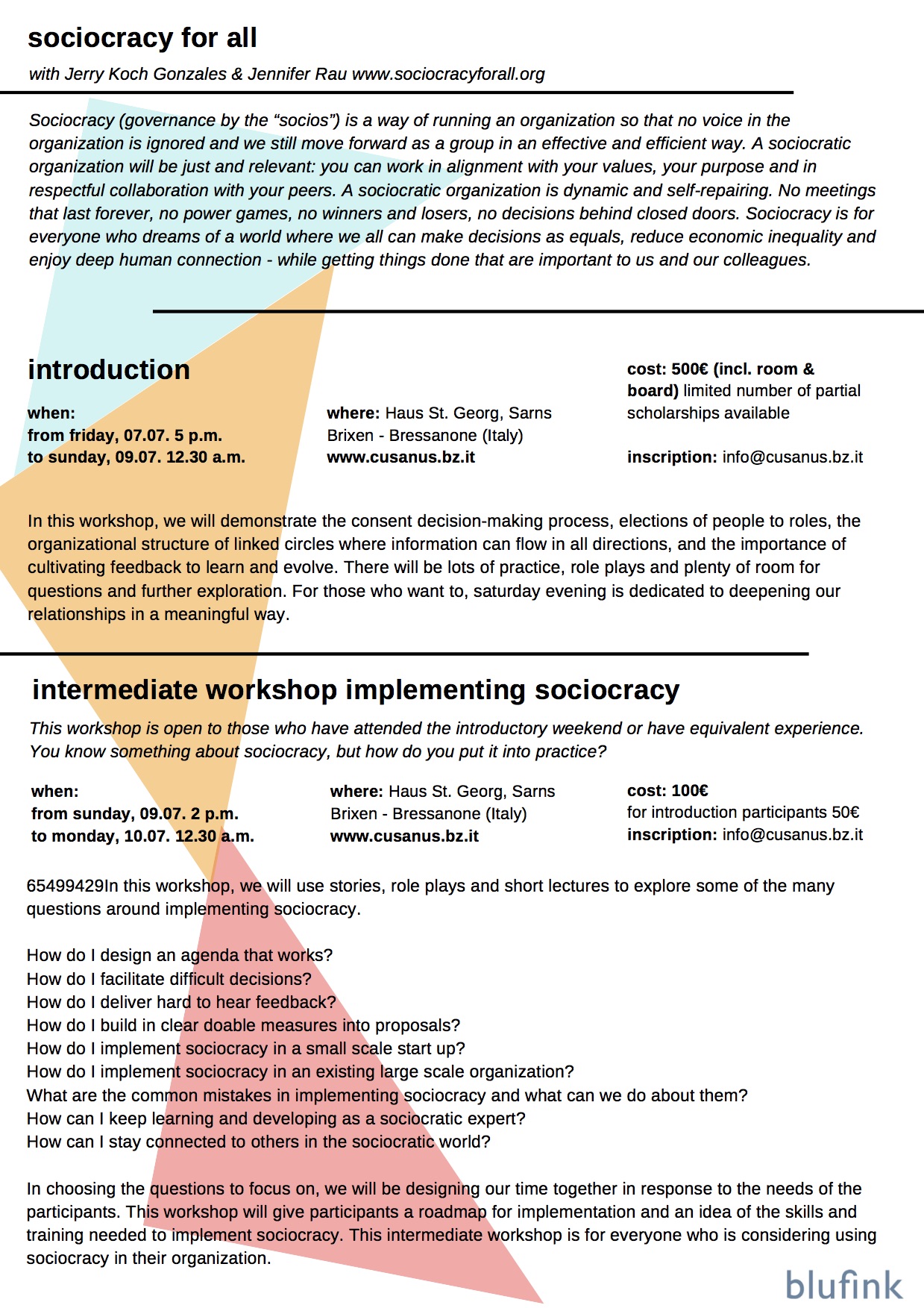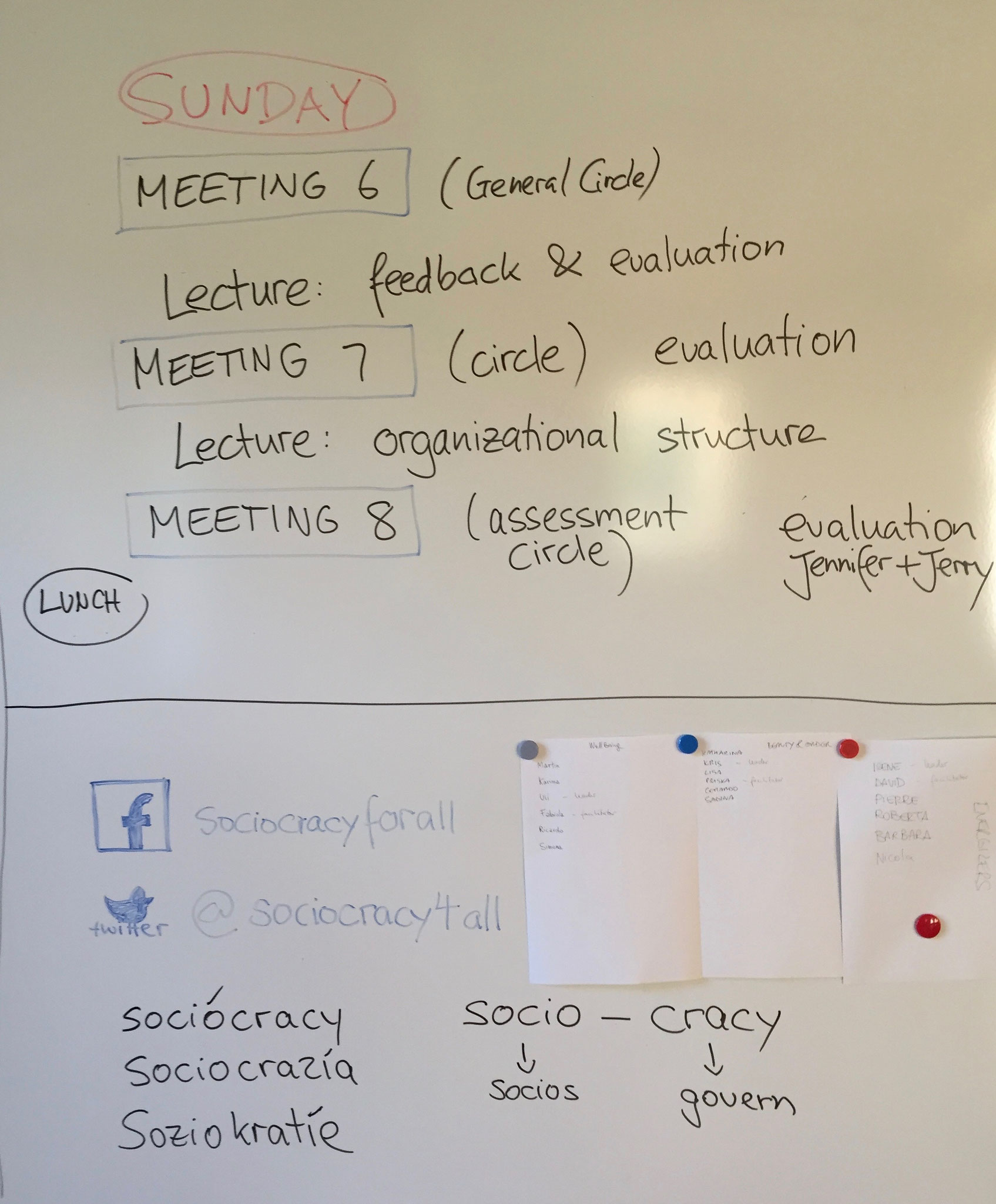In this workshop, we have demonstrated the consent decision-making process, elections of people to roles, the organizational structure of linked circles where information can flow in all directions, and the importance of cultivating feedback to learn and evolve. There was time of practice, role plays and plenty of room for questions and further exploration.